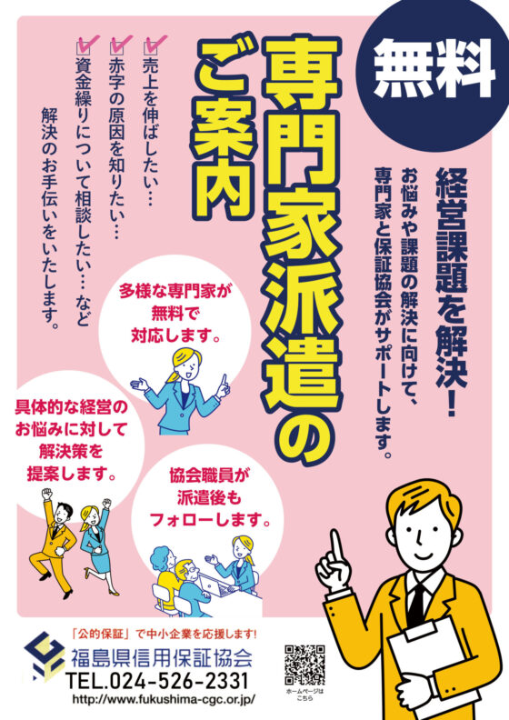 福島県信用保証協会では創業資金だけでなく、専門家(中小企業診断士)の派遣による創業計画づくりのサポートを行っております。創業計画のサポートは、当該協会による保証を利用し創業を予定されている方が対象です。