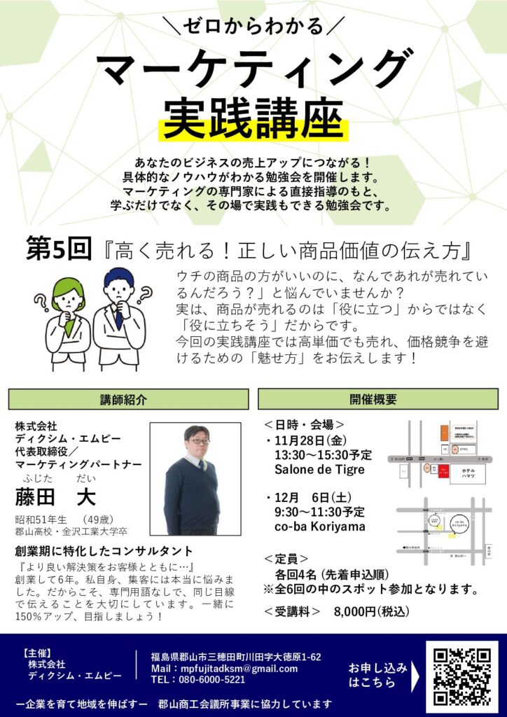 \ゼロからわかる/マーケティング実践講座 第5回『高く売れる!正しい商品価値の伝え方』のご案内