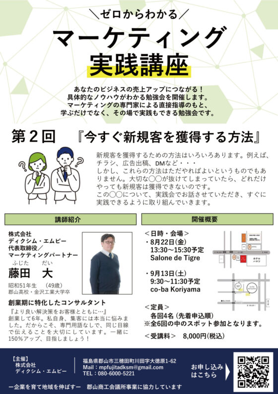 \ゼロからわかる/マーケティング実践講座 第2回『今すぐ新規客を獲得する方法』のご案内