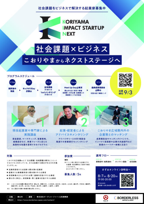 社会課題をビジネスで解決する起業家募集中! 「KORIYAMA IMPACT STARTUP NEXT」