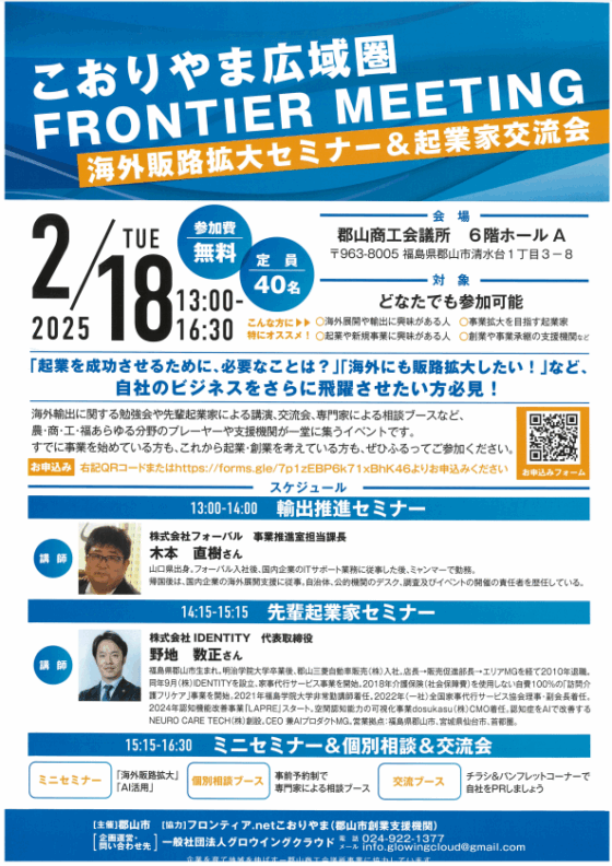 【こおりやま広域圏 FRONTIER MEETING】~海外販路拡大セミナー&起業家交流会~のご案内